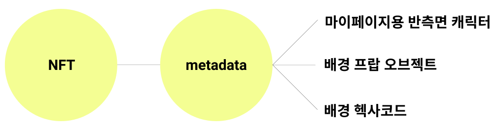 E outro problema! Devido ao contexto do PFP, as restrições de design são tão limitadas que uma imagem quadrada do PFP não pode ser usada diretamente no primeiro plano da minha página, e a diferenciação individual deve ser maximizada usando o PFP 3D. Para escapar da situação em que uma imagem não pode ser usada de forma chamativa e um NFT pode ser usado diretamente, decidimos produzir e importar o caractere NFT separadamente com um meio lado que parece estar olhando para o conteúdo sem usá-lo, e também decidimos produzir o objeto de fundo usado no NFT de uma forma que não reduza a legibilidade do conteúdo do usuário. A seguir, como posso fazer upload do retrato de meio lado e da imagem de fundo criados separadamente, combinando-os com o PFP? Depois de pensar nisso, decidimos resolver o problema com a seguinte estrutura.