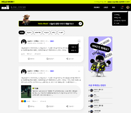 MMZ, abreviação de Movie MemberZ, é uma marca de comunidade cinematográfica que cineastas e público podem desfrutar juntos por meio da experiência de pessoas que consomem e produzem conteúdo relacionado a filmes, descobrindo projetos juntos e criando juntos conteúdo divertido e impactante. Para este fim, pretendemos fornecer uma votação transparente e justa baseada em NFT e blockchain e um lugar onde os fãs de cinema individuais possam revelar a sua individualidade.